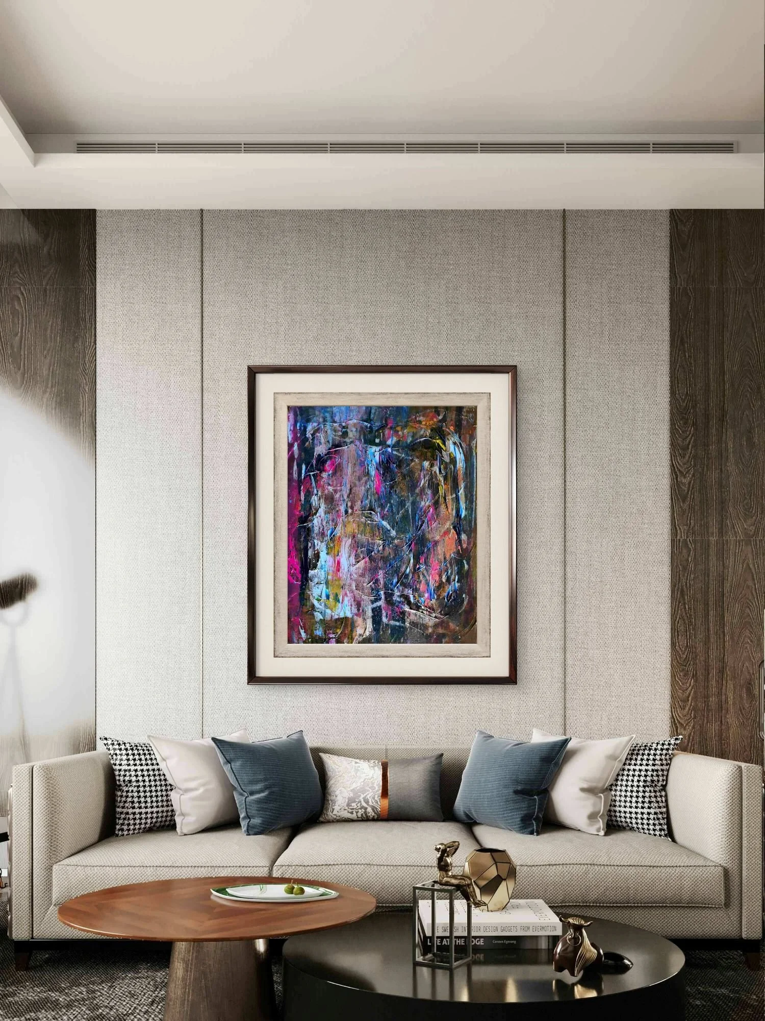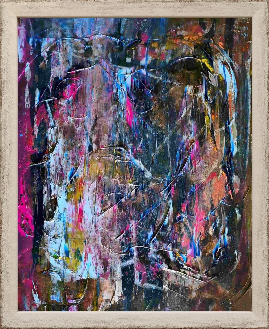“Kou” (Resplandor) es una explosión abstracta de color y energía. La obra representa la fuerza del resplandor que emerge con intensidad, creando un poderoso contraste visual.