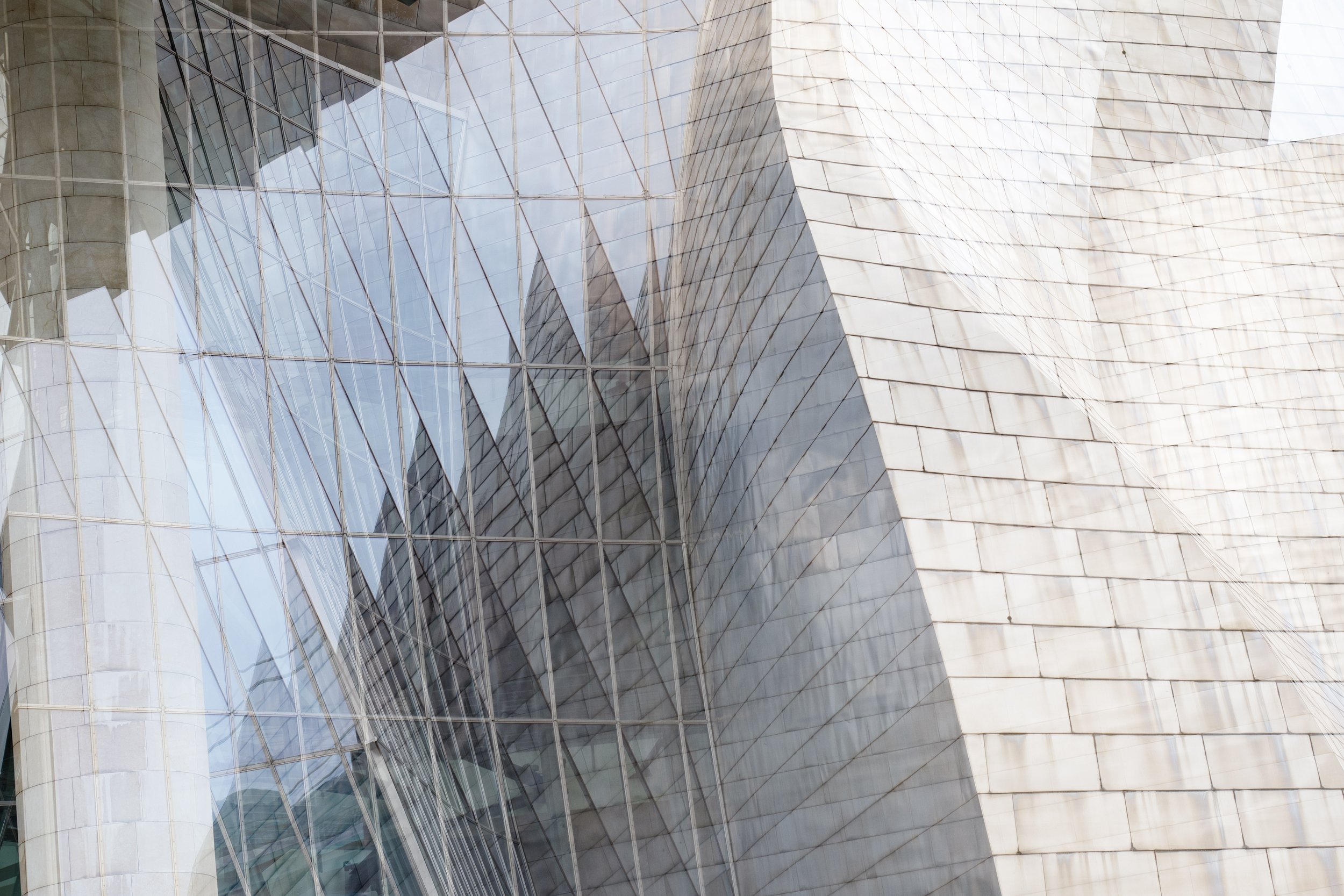 Fotografía contemporánea inspirada en el Museo Guggenheim Bilbao, donde la arquitectura se fragmenta en planos, reflejos y estructuras en transformación.